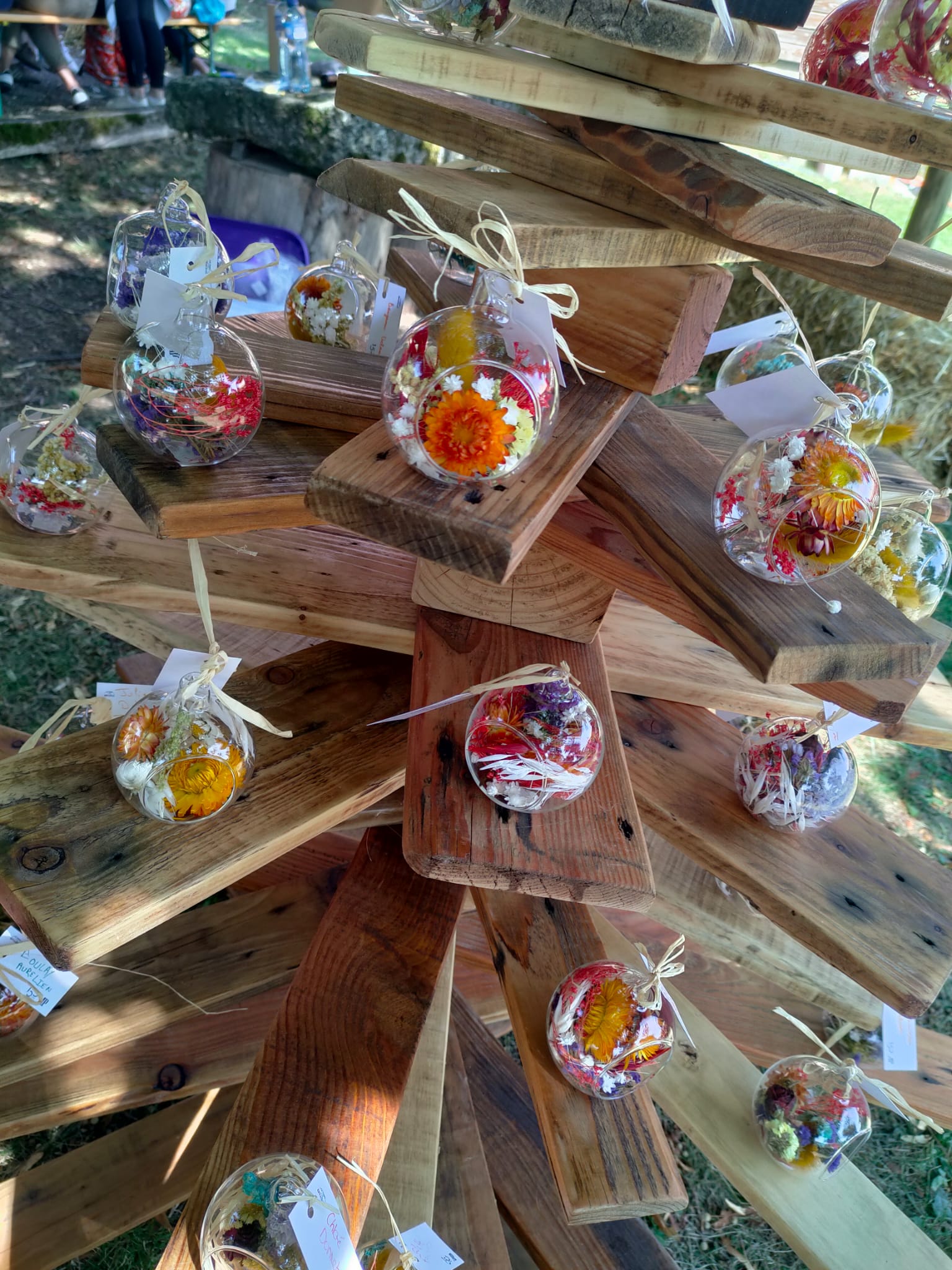 Boules de fleurs délicates, couronnes de Noël raffinées, objets décoratifs en bois, compositions naturelles…